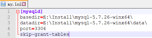 Add ‘skip-grant-tables’ to ‘my.ini’ file in MySQL’s directory